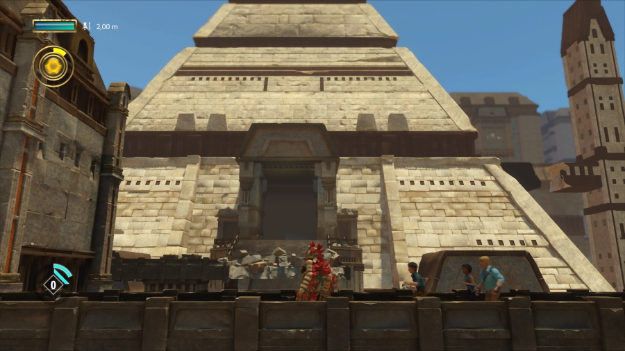 The level design is improved, the hidden rooms where to find gadget pieces are now actually hidden, not well for most experienced players, but not always so obvious and in plain sight as before. There is a bit more emphasis on basic jumping puzzle and using blocks to reach higher platforms, holding levers and such, and using the new teleport pedestals, not that the humans ever need them, they somehow still manage to get ahead of you all the time… somehow.
