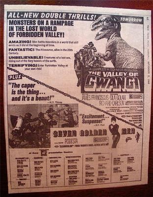 And so in 1969 “The Valley Of Gwangi” came out, making it the second movie in history to feature the mash-up of cowboys and dinosaurs, as the US/Mexican movie, The Beast Of Hollow Montain, came out in 1956, and also involved the oddball subject hodgepotche. “Second” as in there’s at least (there could be more, you never know) a third one, with 2015’s Cowboys VS Dinosaurs.