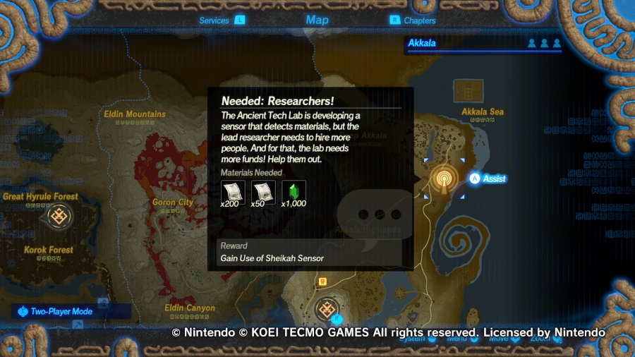 Instead, in a coherent fashion with BOTW, Age Of Calamity basically uses a refined version of the world map system from Warriors All Stars (minus the hub location and the way that game handled the path to various endings), so from the Hyrule map you can access story missions, engage in some challenge battles with special rules, offer resources to complete side-missions, which reward you with other side-missions, cooking recipes, extra combo strings, more health, and unlock facilities like the blacksmith, the training grounds to level up characters with rupees, and so on.