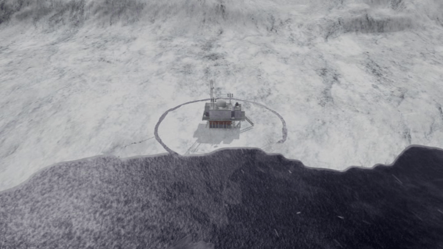 Plot centers about a research facility in the Arctic, where scientists are attacked by a pack of greenland sharks that were able to break through the ice thanks to global warming, and are hunting for more, as evidently devouring Inuit people – complete with sleigh and pack of snow dogs – isn’t enough. As the facility sinks with ease in the icy waters (apparently Monty Python and the Holy Grail construction rules apply here as well), the group has to survive the freezing temperatures, lack of oxygen and the hungry “ice sharks” lurking in wait.