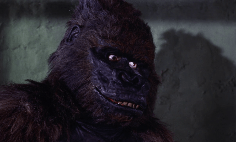 Given how the plot reminds me more of Monster Crash The Pajama Party and crap from the 40s or 50s, i was expecting a cheap gorilla suit… and you get exactly that, a cheap rubber gorilla suit, and i feel even at the times this looked kinda cheap. Now it looks even more dated, obvious…. and let’s be blunt, it probably looked really goofy even in 1961, hard to take it seriously when you can see clearly the skin of the actor under the mask, they even couldn’t be bothered to put some make-up near his eyes so you couldn’t the see clear human skin peeking out of what’s supposed to be an ape.
