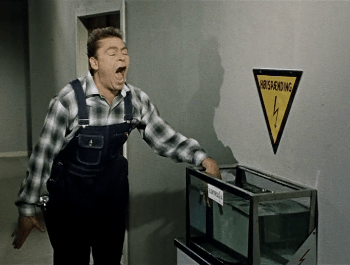 To be honest, i’m a bit disappointed they cut the “Reptilicus song” part from the international version, as the janitor-electrician is a hammy, cartoony delight, the best character in the movie, stat.