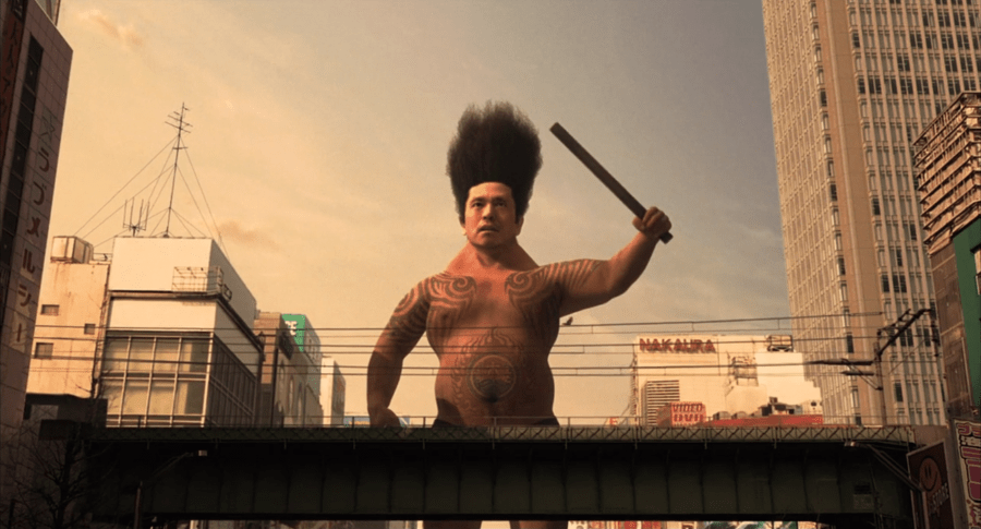 The movie is shot mockumentary style, as we follow Daisatou in his eccentric but isolated life, hear what others have to say about him, be his family members, acquaitances or normal citizens, eventually fading to CG action scenes where he becomes giant and fights weird monsters with fittingly obscure and strange abilities, like a balding bowling pin-human- penguin, a mono-leg with eyes, and so on, all recorded because the monster fights are televised and complete with ratings.