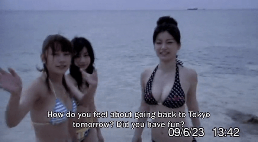 Hope you like seeing japanese girls frolicking in bikini at the beach, taking nudity-free showers, talking about how to confes to boys, and reciting incredibily vapid lines at each others, with the occasional lookie at the tapes of the motel’s previous occupant (again, cleaning evidence is for suckers), and some random dream sequences, because that’s really what most of the movie is, and it’s utterly boring, convoluted and terribly flimsy from a writing standpoint, with a gaggle of terrible, insipid and braindead characters to follow doing their stupid shit all throughout the movie.