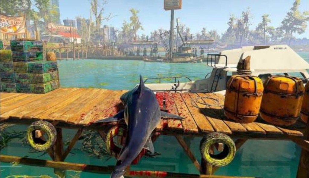 The premise of the campaign/story mode is framed as one of those quasi-documentary tv about killer animals and weird people, and for this season“Maneater” follows a cruel shark hunter, Scaley Pete who hunts your mother shark, before pulling your baby shark self from her belly and leaving a scar on you. You escape, after managing to chew his entire hands off, and here begins your quest for survival, growth and ultimately revenge against the shark hunter himself.