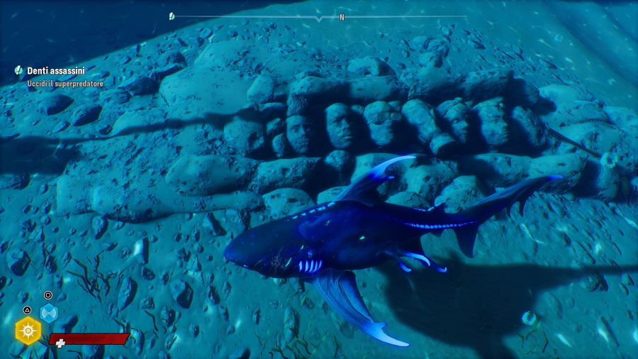 My only real gripe is that the automatic lock-on and autotargeting mostly works well….until you start fighting the hunters in their boats, then it becomes iffy as hell, as the game auto-targeting decides you wanna chomp on the boat because it locked the hunter on it at that second, even if you can’t actually glomp your jaws on him. You can manually lock on a single target, quite useful when facing boss type superpredators… but even this is iffy because you need to hold on the right stick, at least on a PS4 pad, and you can’t simply fiddle with the options to change between holding or toggle. I think it’s this way by design, but it’s a bit annoying, even more since the camera can get hard to control in some of the more heated fights.