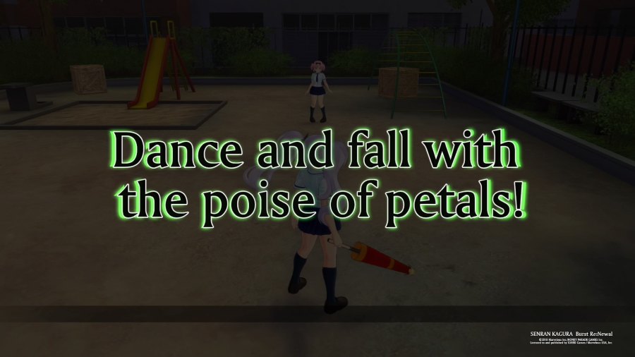Still, it doesn’t change the main nature of the game, as in, it’s fun but you can see it’s basically weaponizing the plot in order to make you fight a boss again as the same character (using Hibari to fight Haruka, for example), and to make you revisit the same 6/7 levels for different story reasons. Maybe this time is at night or in a part of the level previously inaccessible, so it’s kinda new (like the boss fight against Mirai on the rooftops that aren’t normally available in the other stages taking place in the civilian commercial district). It’s not an unusual thing for budget games like this.