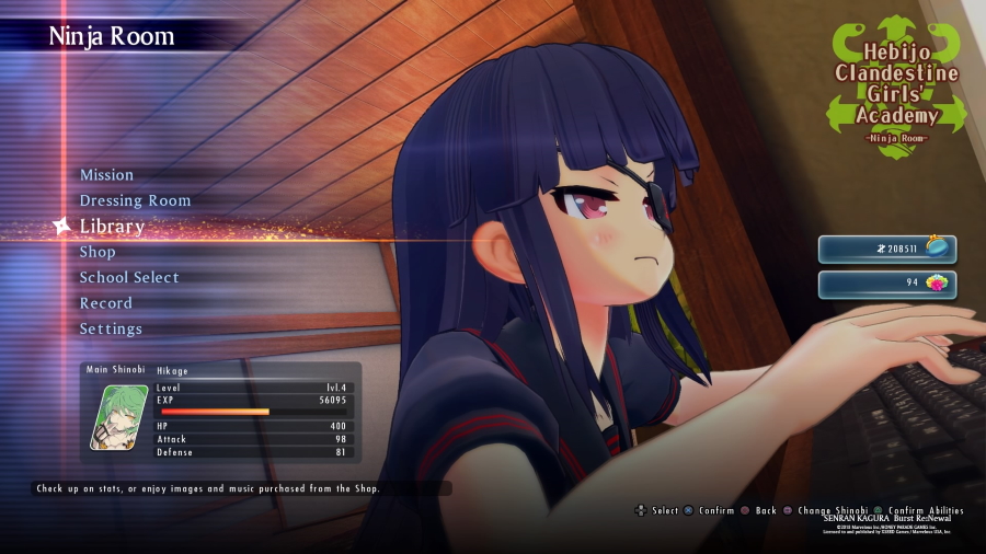 As before, you have Ninja Rooms for each of the campaign/factions (Hanzo and Hebijo), acting as hub for accessing the story missions (and the free missions that you unlock), checking stats, the gallery of music, hidden enemy files collected in the missions, saving/loading, and a shop where to buy stuff for the gallery, or bras and stuff like that for the Dress Up mode. Because of course a game like this has the “looking at the girl changing in her room at your command” mode. With a Diorama Mode inside to pose them against backdrops, and i don’t get this diorama obsession you can find in niche titles. And that crappy PS3/PS4 Godzilla game.