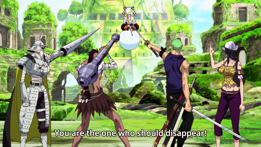This doesn’t mean there aren’t notable differences to the story, there are plenty, all done for the sake of a speedier, less fragmented narrative, like Luffy, Sanji and Usop fighting Satori… not in the jungle as part of the Ordeal Of Balls (also completely cut), but on the same beach the Straw Hats landed after finally passing through the Knock Up Stream and met Konis, among others things.