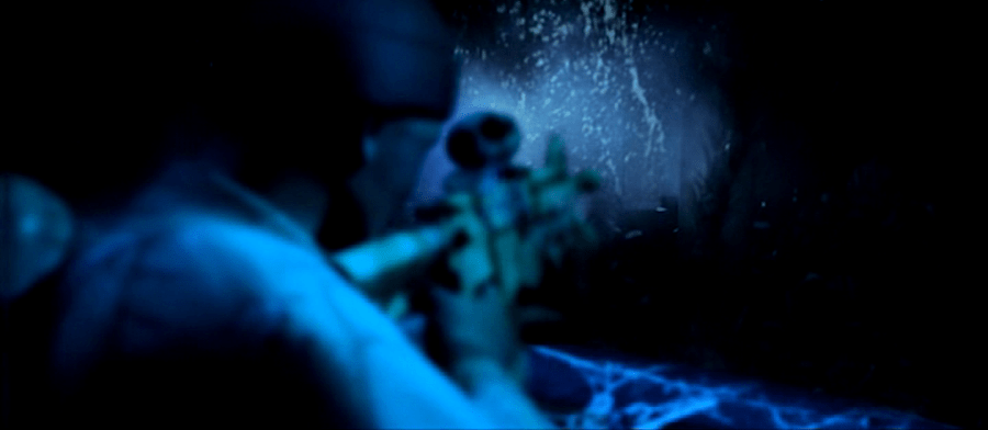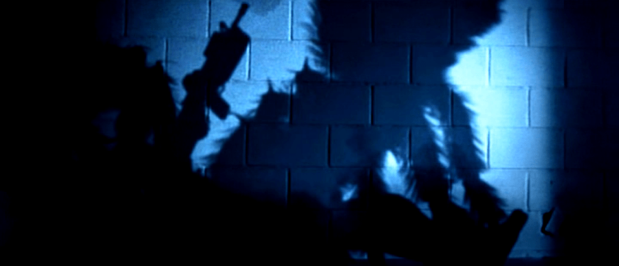 Not that it matters, as the confrontation itself it’s a mixture of people shooting way too fast, bad editing, rampant day-for-night and a location that’s way dark, meaning you won’t actually see shit most of the time anyway, so it’s a moot point to say it looks bad, you can barely tell stuff is happening only due to the digital muzzleflashes basically working as “lighting”.