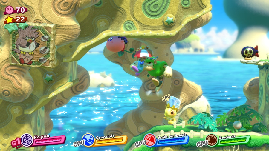 Yes, there are points where you’re forced (actually not really) to deposit the allies you’ve made before progressing. but even if you play along and deposit the allies and your ability… immediatly just after you find more enemies to make new allies. Because it would undermine the focus of the game, i get it, but still, this was the perfect time to actually make a Kirby game harder than usual and for good reason. You could still give help after failing x number of times or give the option to get a super power up like they did in Mario titles, and aside from the usual idiots, no one would have complained.