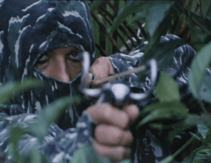 The original footage it’s still fun as you want/hope, but i wanna stress how often they feel completely pointless, some consisting of Harrison just flexing his sword skills to no one in particular, the way the footage it’s inserted into the plot of “Film A” makes one feel like Ho remembered at the very last minute he was supposed to edit ninja there.