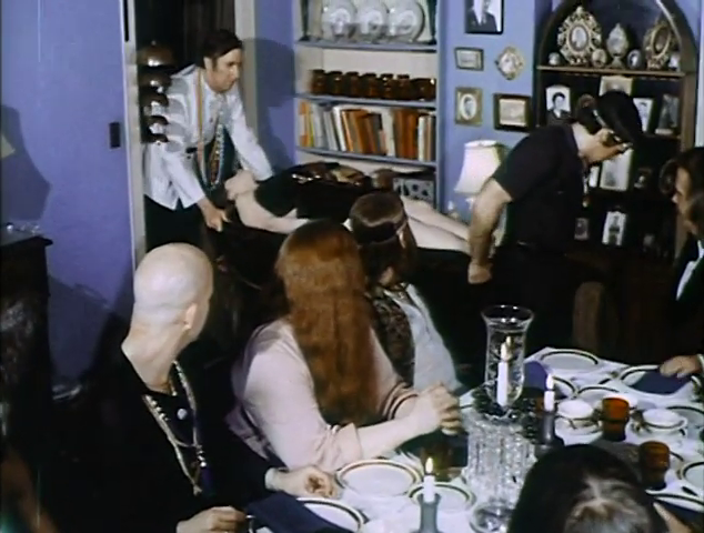 Just complety random, tacky, any excuse to imply violence but having to cut away and sprinkle cheap fake blood into something from off-screen will do for Shriek Of The Mutilated. Or have a chill 70s party with the track Popcorn in the background, only to have it edited out for the DVD release due to copyrights bullshit. That and the “italian-native american” mentally challenged (and mute) servant-housekeeper Laughing Crow, every mountain residence has one of those!