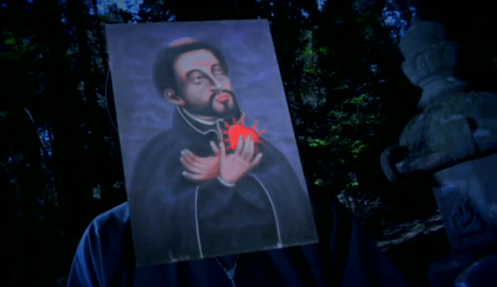 I mean, this is a movie that has a “wrist cutting club” and a “wrist cut contest”, and in a flashback with Monami’s mother we see Francis Xavier hunting vampires in the woods, and these are just a couple of random things taken out of context, but do give you a good idea of how absurd and over the top the movie is, and how it revels in its deliberate ridiculous overdrive.