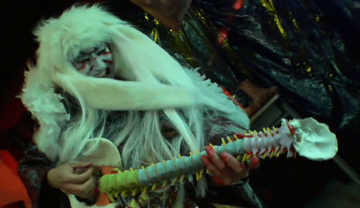 More importantly, it has indeed everything that fans of this genre will want from it, from insane amount of blood sprinkling like water from a garden hose, a lot of practical gore of good craft, side characters as flamboyant and delightfully ridiculous as the main ones, and plenty of weird scenes that you couldn’t even imagine, like a musical segment where “Kabukistein” uses a spinal cord as a guitar, alongside the expected anime style fight where people throws “blood blades”, uses arms as boomerangs, and does crazy shit until we can get the versus match promised by the title.