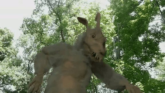 On this, there’s the fact that at least the director realized there’s no point to wait until the last 5 minutes to let you see what passes for the monster, so might as well show it to you in the first 10 minutes… and it doesn’t look much as a rabbit, more like a rat, a bipedal rat, an obvious marionette on a string, crude and badly made on “purpose-necessity” (with this level of budget, “purpose” it’s kind of a meaningless word to throw around), but still better looking than the horrendous digital effects that do remind one of those old FMV games for the Sega CD and the likes.
