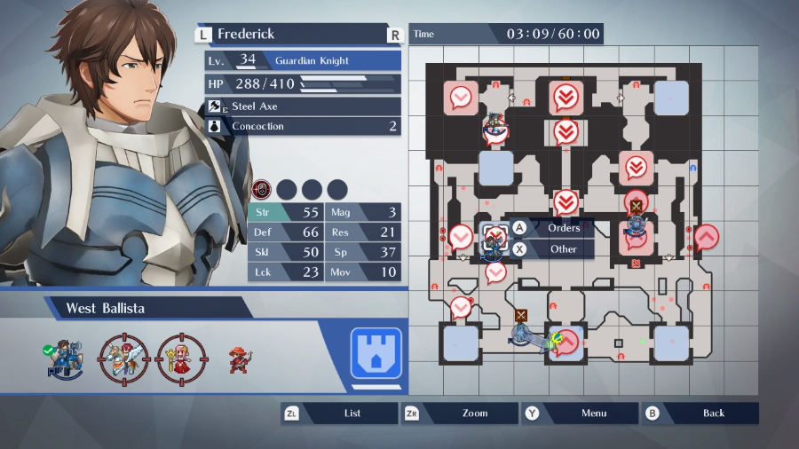 In stead of the Zelda items, there are many other Fire Emblem systems, like the ability to group together two units, letting you swap between them and giving you access to an automatic defensive parry from the rearguard character or an offensive attack, alongside a powerful dual musou if both characters have at least one bar filled.