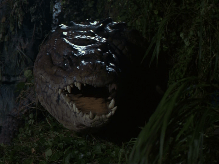 And in the rare occasions when it’s a digital effect… you’ll piss your pants laughing at how bad the effects can be, to say nothing of the istance where it transictions from the background digital croc to the animatronic one in the close ups. At least some of the practical gore looks decent, but it feels like a monkey paw thing, so yes, this one has a better looking prop for the killer creature, but it might as well had been crappy CG because it ultimately feels as “believable”.