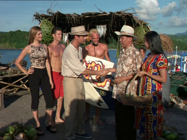 It’s hard to say if this was the intention all along or a mid-production “stop and swoop” pivoting, as the plot it’s about a group of friend that come up with a new extreme sport, the “blood surf”, which consists in putting chum in the water to attract sharks, then riding a surfboard through the pack of blood-frenzied animals. As they try to shoot a promotional video for the blood surf they end up attacked by a saltwater crocodile, then end up crashing on a pirate occupied island.