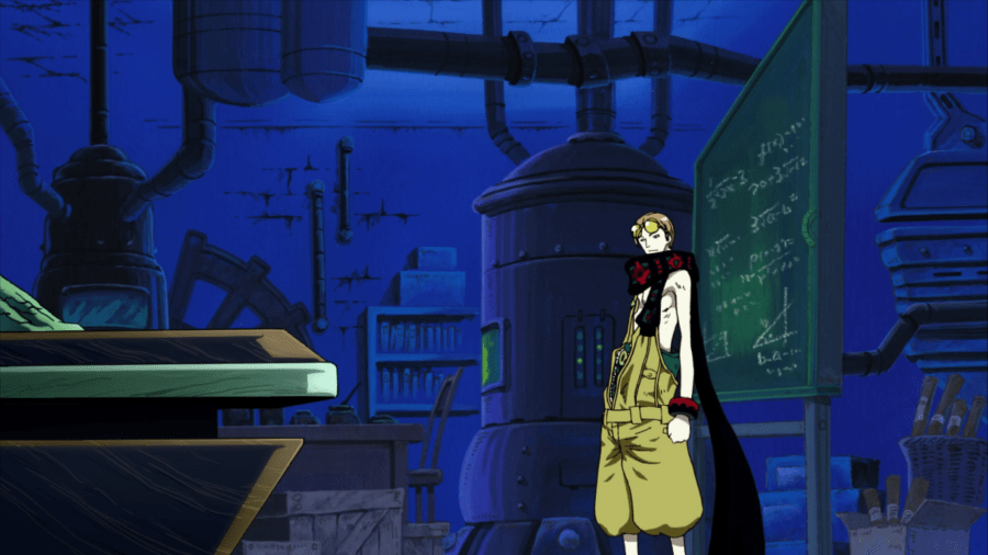 The villain it’s at least a bit different, as we have a skinny-yet-ripped mechanic twink called Ratchet and his two sidekicks, the punk-ish guy and the loyal overlyzealous musclehead Honki (which is a pun since “honki” means “serious”, but i think it’s still a blackxploitation reference, since the guy has a sort of afro), but he’s more of a scoundrel with excessive ambition than a serious or nasty villain, even in terms of goofy cowardly villains Wapol is far more menacing and evil. Ratchet is just a twink specialized in mecha construction (with his features – like his head and glasses on a half-bust or mast – as a signature), making robot maids, referencing Gigantor/Tetsujin 28, and he’s mostly played for laughs, as it’s often the case for this kind of One Piece antagonists.