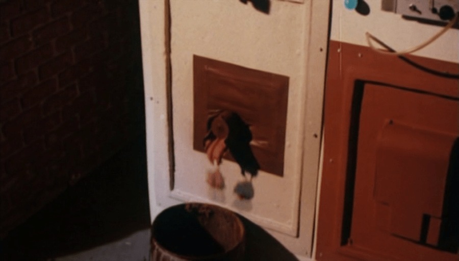 BUT strangely there’s some entertaiment to be squeezed from it, the premise – despite being very badly squandered by the execution– it’s kinda original and cool, there are some weird memorable scenes and lines (plus the strangely sensible presence of a deaf mute disabled worker in the cat food factory that isn’t treated like shit, even by her bosses), and some vintage not-really-nudity.