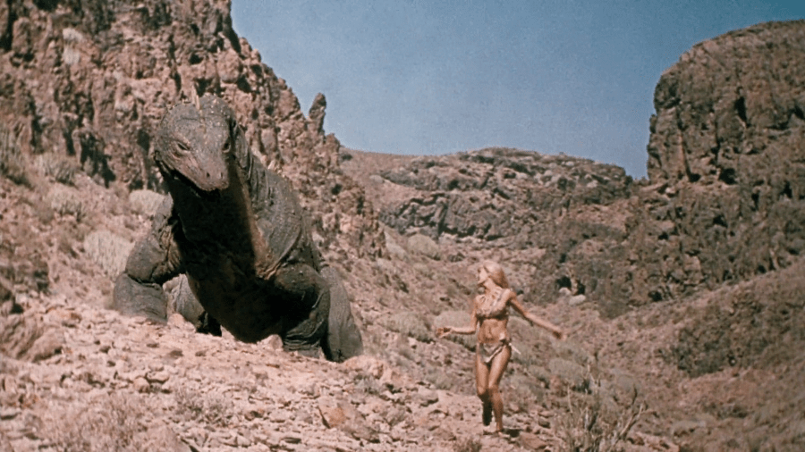 The third (and penultimate) entry in Hammer’s “Cave Girl” series (One Million Years BC, Prehistoric Women, and lastly Creatures The World Forgot), when Dinosaurs Ruled The Earth (or The World, in its UK release) is also one of Hammer’s prehistoric cavemen and dinosaur films to be confusingly retitled as “When Dinosaurs Chased Their Own Tails” for its italian release, which also altered the opening voice over narration to make some random ass sexist and classist remarks about dumb bimbos and how unlikely “lazy student protesters“ were in the stone age and so on.