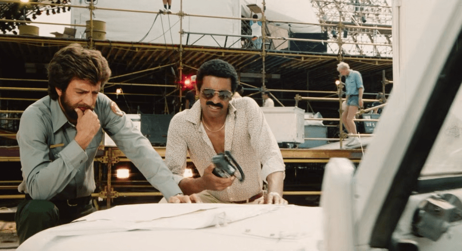Then we transition into the 1983 footage of Clooney, Sheen and Dern wandering into bear territory, and yes, they made no effort to even match the newly shot footage with the old one, at all, not that it was ever gonna work if the footage wasn’t also shot around that time, but you know..