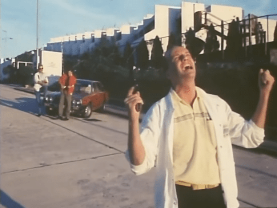 But fear not, the original “Ted Fast VS The Solomon Grundy Gang” has plenty of funny scenes, as he goes around the woods and gets ambushed by Solomon goons that react like Time Crisis 2 enemies when shot, only to retaliate with incredible rolls and flips and cheesy badassery to the sound of lifted soundtracks as usual.