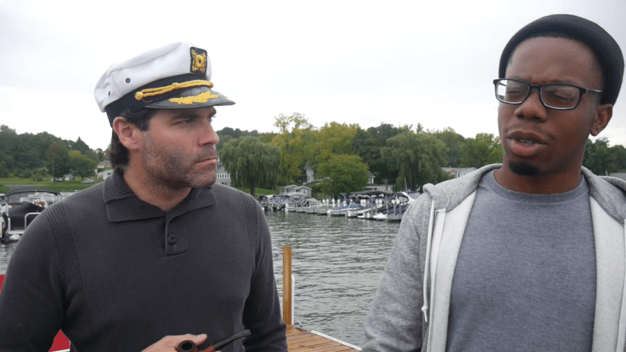 Yep, the bar is that much low, and like many of these “almost no budget” flicks, the plot it’s basically the size of a packing peanut and to reach 70 minutes there’s a lot of random bullshit, like one dude being a creep in 4K by photographing random ladies, a reporter trying to do a journalism (while spilling exposition that wants to confirm the events of Jurassic Shark did happen “fo’ real”, despite this clearly not being filmed in the same lake in Canada), the aforementioned creep and his friend working at the marina now after the reward for retrieving the painting dropped in the waters by the thieves of the first movie, and at least they had the budget to rent out what looks like a rig.