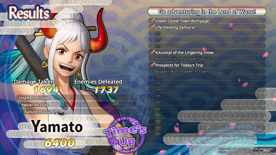 On the subjects, there are four stages that reuse the maps from the base game, as in the Land Of Wa, Tottoland, Marineford and Sabaody ones, with each more difficult than the ones before and a fitting recommended level indicator. So sadly no new maps to play in, even one would have been nice, as it would have been a proper list of the unlocked objectives/missions for each stage/area (which does appear, but only in the result screens), for completition’s sake.