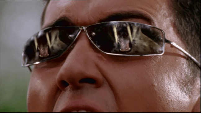 For the rest, yes, it’s got everything you’d expected from the formula, from the characters having the IQ of a broken rock, them being a random mish mash of people that shouldn’t be there together outside of their purpose as premium cat food (investors, friends of the park CEO, a random group of college teens on some sort of fraternity’s scavenger hunt in what’s a pre-opening shareholder oriented presentation, etc), and i just mentionend Jym Wynorski, but this whole incident kicks off because a fat guard enters and leaves open one of the electrified enclosures…. to recover a page of some soft-core porn mag.