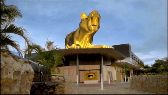 Maybe a itsby bitsy better but that is countered by the fact Kinectimals looks better, and by some of the ugliest and obvious “5 dollars CGI” i’ve ever seen in one of these, more specifically i mean a building that has an ugly, untextured CGI golden statue of a sabertooth tiger on top, one of the most hilariously, embarassingly bad, unbelievable “effects” i’ve seen, this golden shower-colored crap “statue” (see image above) that immediatly sticks out to the view.