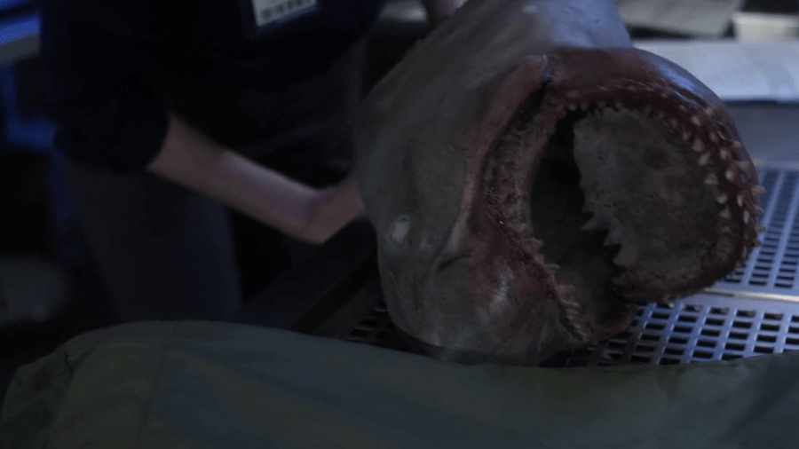So, yeah, while it’s not an outright farce in terms of tone, the movie takes itself seriously… but not too seriously to make it distracting, and there are some funny bits like the attempted kill with a machete, a disembodied zombie shark head somehow moving around by itself, or an airborne zombie shark “headchomping” a human zombie. Yeah, there’s those too, might as well since we’re stuffing the blender with both genres, and at least they had the budget to make the shark carcass a practical effect…. until it has to move, turning into the expected low budget CG creature.