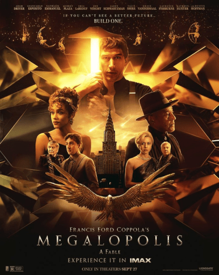 Megalopolis it’s Francis Ford Coppola doing a more modern take on Metropolis, basically, just with the city of the future being a New York-Imperial Rome hybrid, and the framing of “a fable by Francis Ford Coppola” setting the angle right… but that won’t really soften the blow.