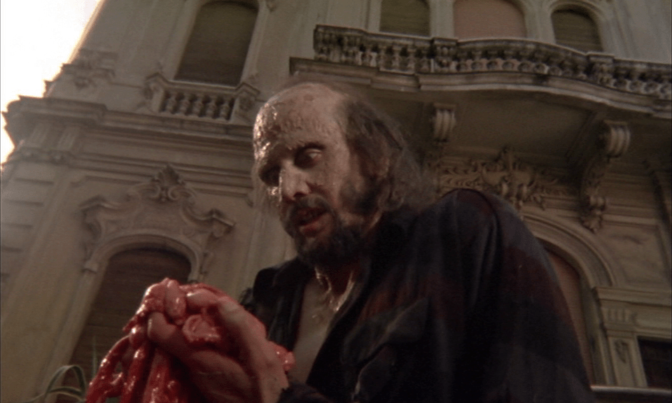 George Eastman and Joe D’Amato would team up again the next year for Rosso Sangue, better known internationally as Absurd, planned to be a direct continuation of Anthrophagus, but changed in order to capitalize on the success of the original 1978’s Halloween. As you do.