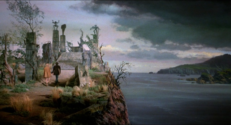 Which in a roundabout fashion makes sense, it’s hard to feel this is an immortal tale of cosmic horror glancing the veil of our reality set in arcane past when everything is also heavily tapping into the then modern sensibilities of the late ’60s, with the whole verginal sacrifices, crazed cults, erotic scenes of “naked in commas” actress Sandra Dee in her first adult role, and plenty of psychedelic poster sequences with high contrast colors and such.