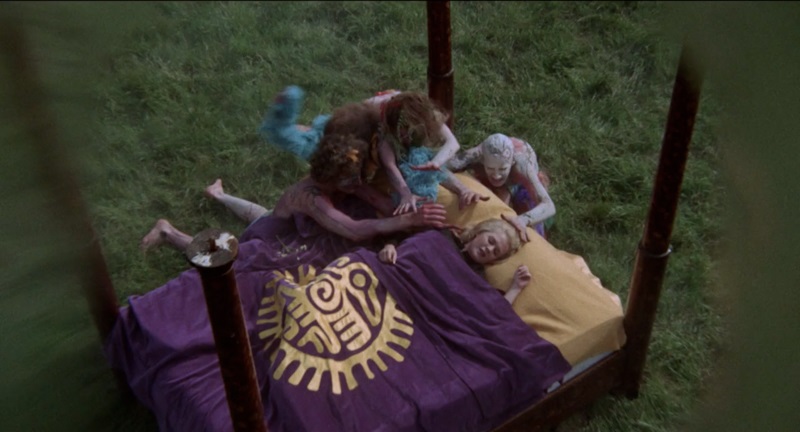 Again, everything IS (by definition and reality) a product of its time, whatever that time is, and it’s not necessarily for ill, i feel the psychedelic imagery fits perfectly, as do the weird tunes, not so much the sexual angle but “it was – literally this time – the “70s” and the genre conventions of witches, pagan cults, and sex orgies was also a practical way to sell it to audiences.