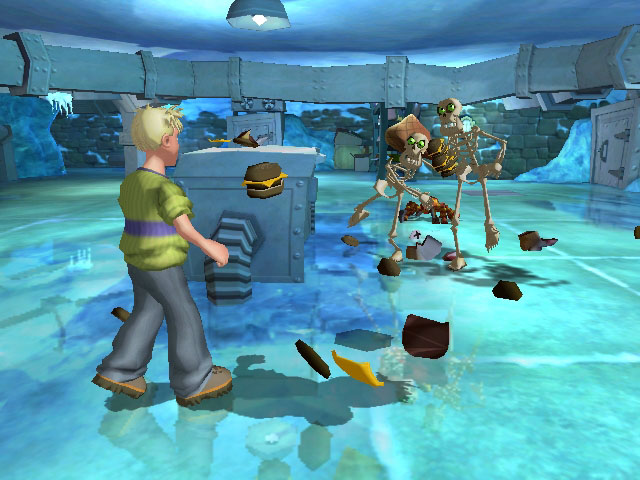 Grabbed By The Ghoulies it’s actually pretty straightforward in terms of actual gameplay, as it’s pretty much a linear 3D beat em up game, as you explore and fight through the various challenges each room of the haunted mansion throws at the young protagonist, Cooper, bent on saving his girlfriend Amber after she was kidnapped by Baron Von Ghoul, irritated by Cooper calling him a creep to his face. As you do to random strangers living in places called Ghoulhaven Hall.