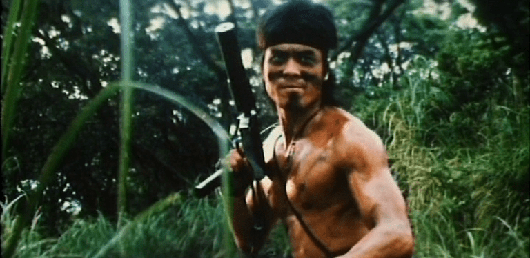 As i said, the first half is John (Alexander Lo Rei ) taking revenge on the douchebags corrupt cops who framed him and put in him prison, and thanks the lord he’s called John, so he can feel less shame of cosplaying Rambo and doing a blatant First Blood “inspired” massacre of the bidepal pigs, the second is him going back to Hong Kong to stop the “Game Gear Shinobi” inspired evil elemental ninja from getting the secret formula. So secret it is, it doesn’t matter what it is, you mention “the formula” to ninjas in these films and they will pivot to getting it at all costs, they just can’t resist the allure of it. It’s ironically a formula to cure cocaine addiction, btw.