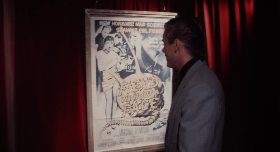 Things kinda just happens, as a whole, from the boat almost immediatly (given how it’s edited) falling apart, forcing them to go ashore on the island, there’s even them just hearing voices and its the hotel cinema room playing Fiend Without A Face (a classic killer alien brain movie you’d wish you were watching instead) to an empty audience, so why the fuck not just sit back and watch that?