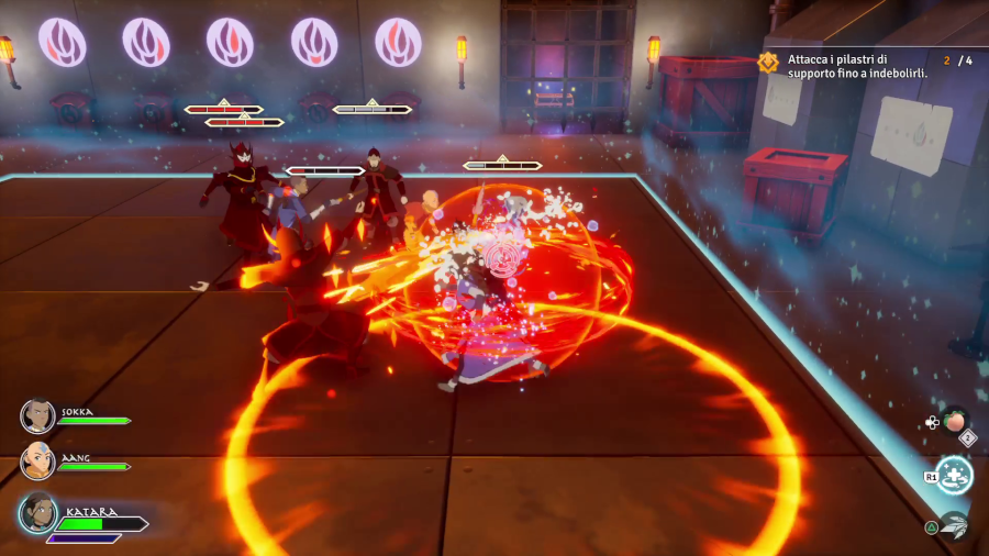Don’t expect much in terms of depth, there are some combos, but it’s just a couple per Bending style, and this applies to Aang only, you can buy extra elemental scrolls but they just upgrade the combos and still, story progression dictactes when Aang can use the various elemental bending styles and these combos, which is fine but it’s a tease when you see the IA controlled characters like Katara or Toph use them fine……because those combos are part of their moveset by default.