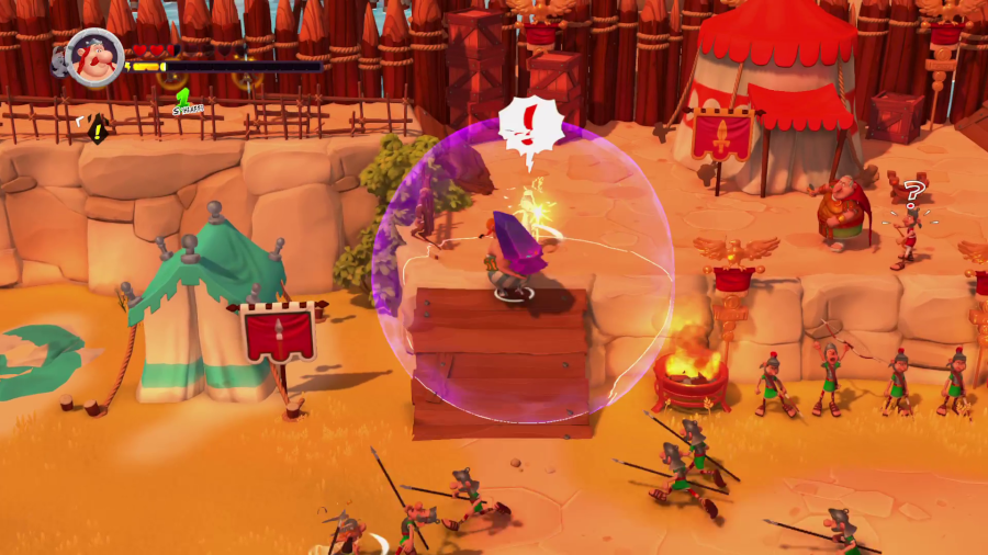The new major addiction to gameplay is the titular Crystal Menhir, which Obelix gets/has to carry around and that also grant him the ability to use elemental menhir attacks by slamming the thing on the ground, which help in battle and exploration in the expected/banal ways you’d think, but at least they don’t invalidate the usage of the base non-elemental menhir.