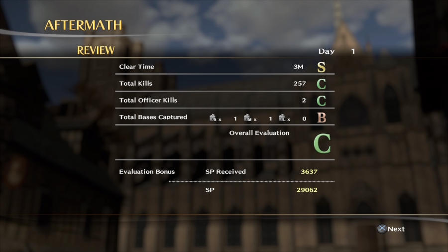 Also, as a side niggle, it’s weird how the fame system and the battle rating basically fight each other, since you get more fame by spending time capturing extra bases and defeating extra enemies, BUT this goes against the scoring-rating that encourages you blazing through battles by going straight for the main or required base to capture and ignoring everything else.