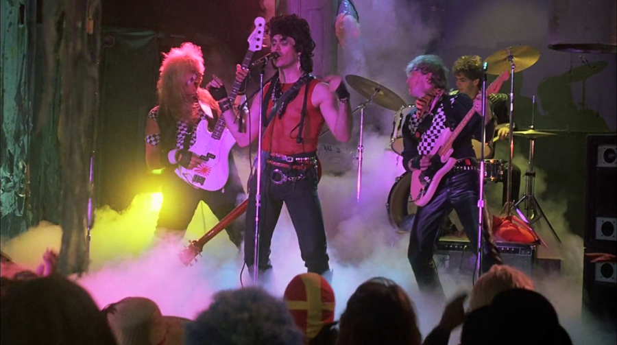It’s also telling how almost 20 minutes are spent on a “battle of the bands” school contest putting a Rick Springfield knockoff band against “hair metal band n°96”, happening because the characters that know about the undead killer monsters decide the battle of the band taking place at school is a place like another to fight them off. It also reminds me of Zombie Nightmare, minus having John Mikl Thor and music by actual, known heavy metal bands like Motorhead.