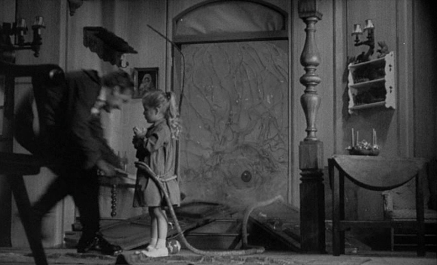 On one hand, it kinda has a fun sounding plot, and on paper it should be an underrated, forgotten film of the alien invasion-atomic monsters, since it has a psychic girl that seems to be receiving visions of the future and maybe of the present from the point of view of people she doesn’t known, it does have radioactive clouds that are actually weird tentacled aliens with one giant eye on their bodies that also spawn an area of incredible cold, and that are able to mentally control their dead victims as flesh puppets.