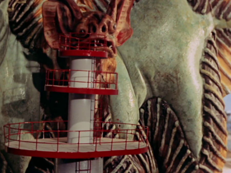 We can the movie go from the mountainside to a city scene in seconds, or from the near beachside to a Ultraman kaiju tearing up an electric power plant, or from somewhere nowhere near a body of water to a kaiju in the water swimming into a refinirey port station.