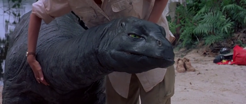 like One Of Our Dinosaurs Is Missing, thought thankfully no “Yellow Peril” age chinese stereotypes, we’re moving to Africa as the movie premises involves a couple of archeologists trying to track down the local legendary monster known as mokele mobembe, whom happens to share many characteristics with sauropods, dinosaurs basically, leading the two to find a family of brontosauruses deep in the jungles of Congo.