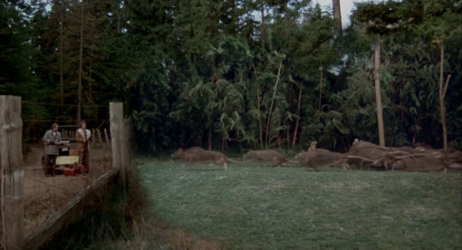 I say it’s more akin to Jaws…. but maybe actually a kindred spirit with Night Of The Lepus, even ignoring the rodent connection, there’s this dumb shlocky approach to it that make is feel it’s still the 1950s, and there’s also a goof where you can see one of the actors posing as rats showing its legs.