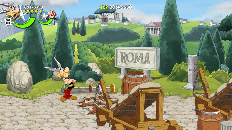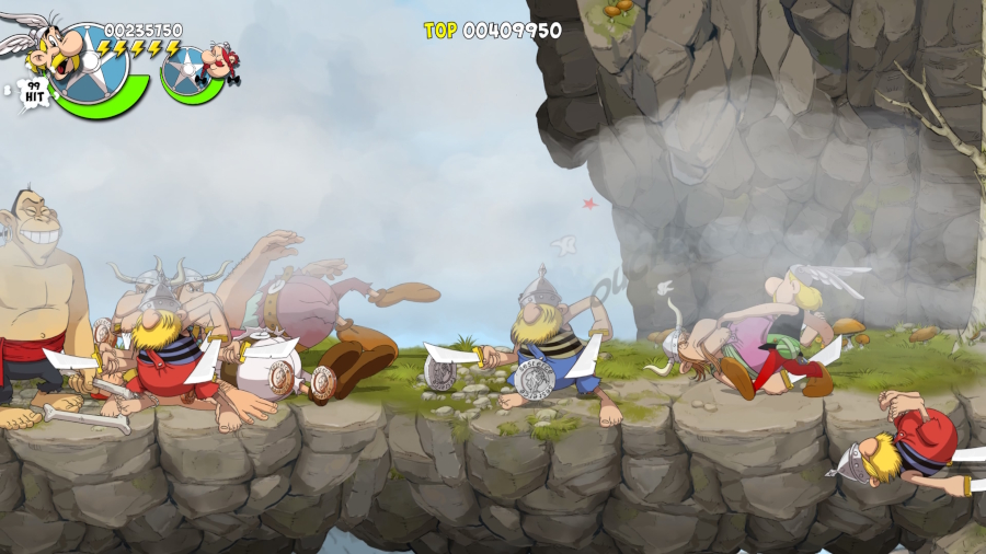 i mean the game just scales the view back to accommodate for when bigger hordes of enemies are on screen, so there’s no excuse. Especially since Asterix and Obelix don’t have really properly distinct playstiles, so they could have taken a couple of the village regulars and made them playable just for 4 players, maybe it would have been messy, but not much more to break the gameplay, given what that ultimately is here, as in, really, really basic to a fault.