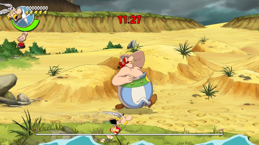 Music is actually quite decent, nice compositions, fit the tone of both the series and the various locales, like the Corsica one, the english voice acting is decent, honestly, though you’d wish there were more lines of commentary or reactions spoken by Asterix or Obelix, after a while they just keep being recycled even more than they should